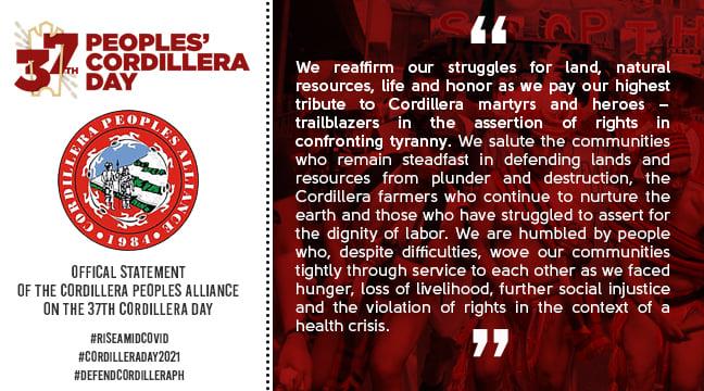 We, the undersigned indigenous peoples, civil society organisations, institutions, human rights defenders, and peace-loving peoples of the world, firmly express our enduring support for the defense of the Cordillera region in the Philippines—the people, their land, heritage, and right to self-determination.